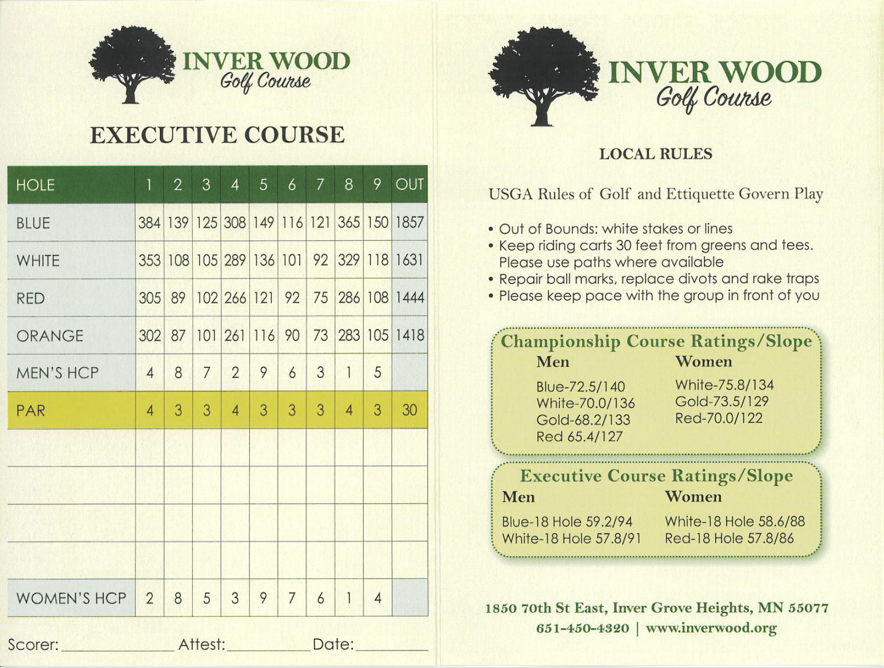 Course Info/ Scorecard